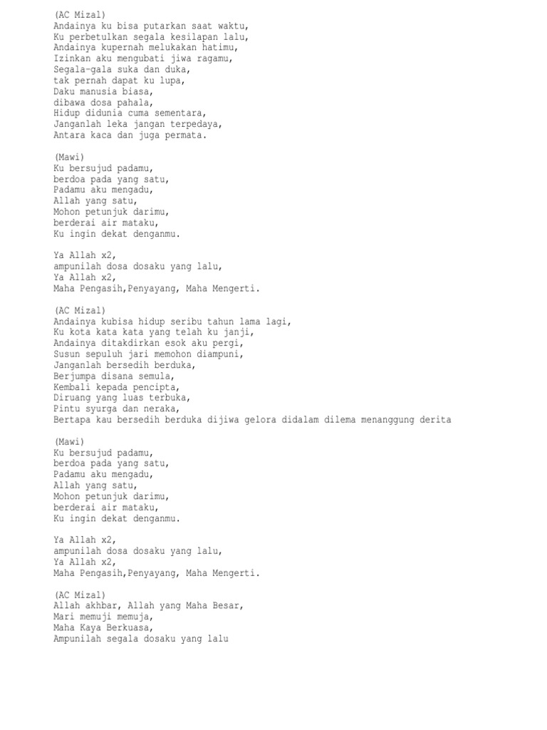 Lirik Lagu Al Haq Yang Satu Ac Mizal